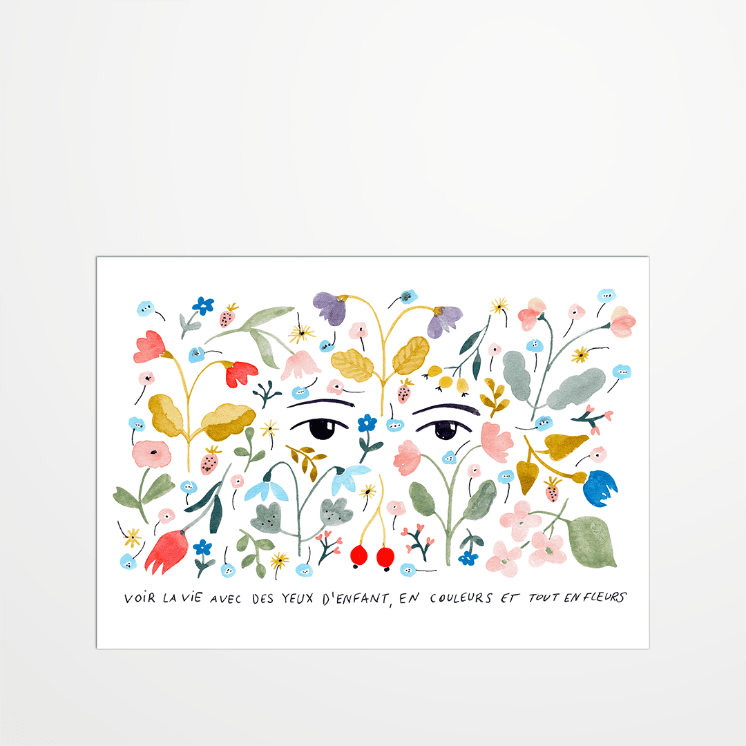 Une carte postale imprimée en France sur du papier 100% recyclé, illustrée par Julie Adore