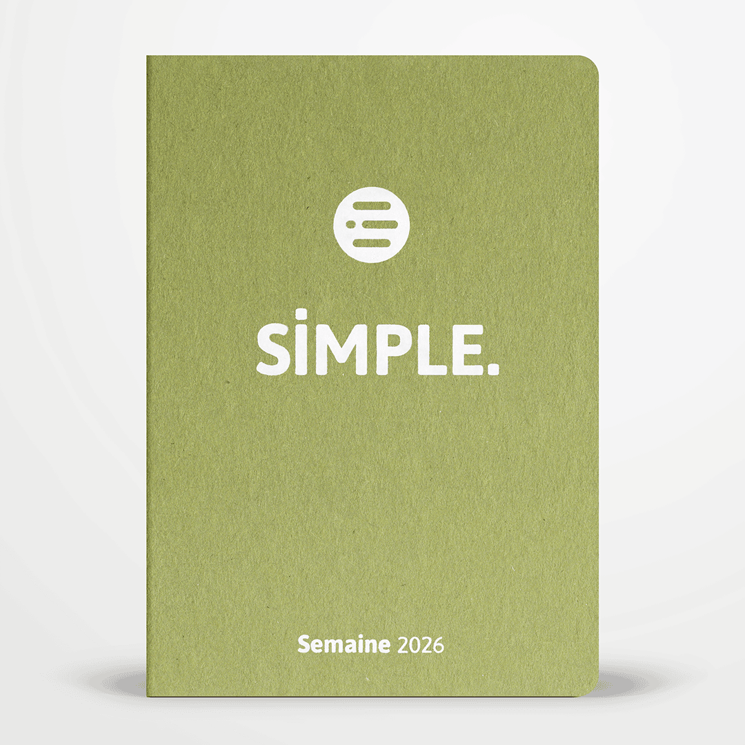 L’agenda SIMPLE est un support papier minimaliste pensé pour nous permettre de définir nos priorités, de choisir nos tâches avec soin, de les planifier et d’en effectuer le suivi. L’objectif ? Reprendre la main sur notre organisation pour gagner en efficacité et en sérénité !